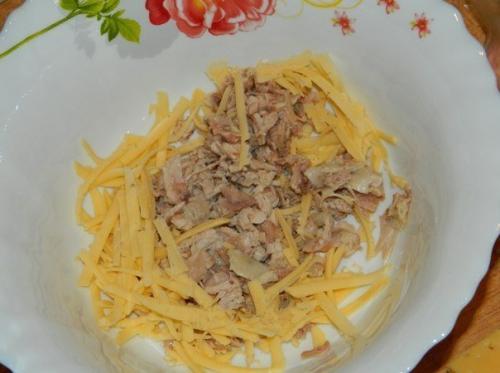 - Вареное куриное мясо - 300 г;.- Ветчина - 250 г;.- Огурцы маринованные - 3-4 шт.;.- Помидоры - 2-3 шт.;.- Яйца - 3 шт.;.- Сыр - 50 г;.- Зелень;.- Майонез.Приготовление:Куриное мясо режем на кусочки, мы добавляем тертый сыр.Режем соломкой ветчину и добавляем в салат.Далее нарезанные соломкой огурцы и яйца.Добавляем порезанные помидоры и зелень. Заправляем салат майонезом и подаем к столу.Вкусный салат из ветчины, куриного мяса, овощей, сыра и яиц украсит и повседневный, и праздничный стол. Приятного аппетита!