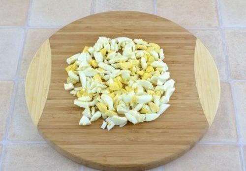 1. поставьте вариться яйца вкрутую. Затем остудите их и очистите.