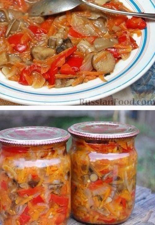 У сладкого перца нужно вырезать сердцевину с плодоножкой и нарезать мякоть кусочками или соломкой. Вообще, все овощи для этого салата из грибов на зиму нарезаются произвольно, как вам нравится - соломкой, кубиками, главное - не очень крупно.
