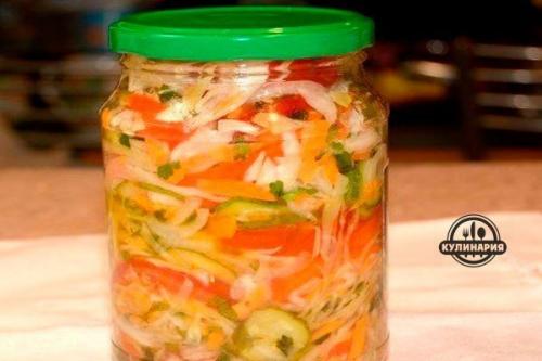 Готовые остывшие банки убрать на хранение. Салат может храниться при комнатной температуре. Зимой баночка такого удивительно вкусного овощного салатика станет украшением вашего стола. Приятного аппетита!