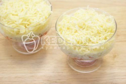 Далее слой тертого с майонезом сыра.