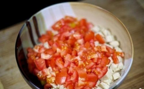 Туда же добавьте кубиками нарезанные помидоры.