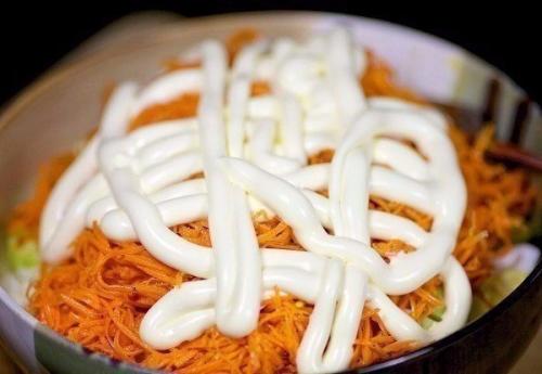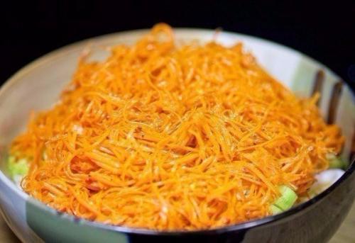 6. добавляем в салат ароматную морковь по-корейски.