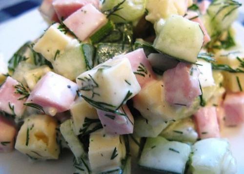 1. мы ставим вариться яйца. Сыр режем кубиками. Также поступаем с ветчиной. Огурцами. Мельчим отваренные яйца.