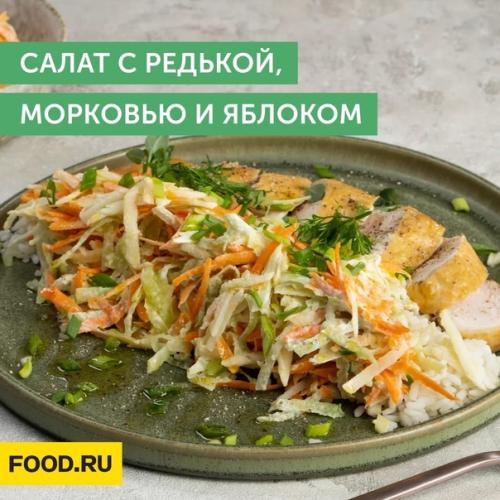 Салат с редькой, морковью и яблоком представляет собой сочное и очень вкусное блюдо, в основу которого входят овощи, фрукты и питательная заправка.
