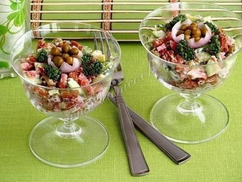 Подать салат порционно в вазочках или креманках. Украсить по желанию. Приятного аппетита.