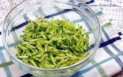 2 слой - огурец на крупной тёрке (лишнюю жидкость отжать), смазать майонезом;.