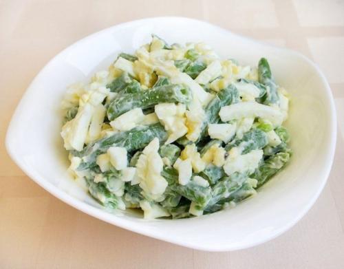 4. очистите яйца и нарежьте их в салатник с фасолью.