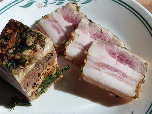 Свиное сало должно быть с обильными мясными прожилками, обычно на порцию беру кусок сала (можно грудинку - получится деликатес, как из магазина.