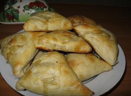 По истечении времени достаем наше тесто, раскручиваем улитку и нарезаем небольшими кусочками, раскатываем, заполняем начинкой.