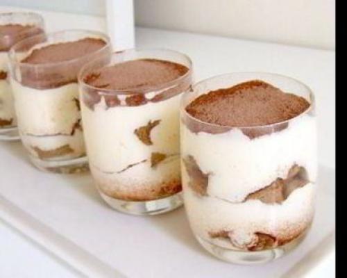 2. окунуть печенье на 5 секунд в кофе. Затем, поочередно выкладывая слои из печенья и крема, сформировать десерт (в стеклянной чашке или креманке будет особенно красиво.