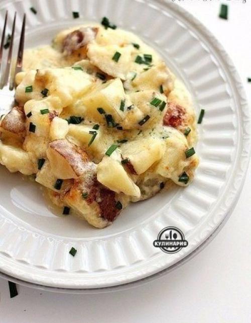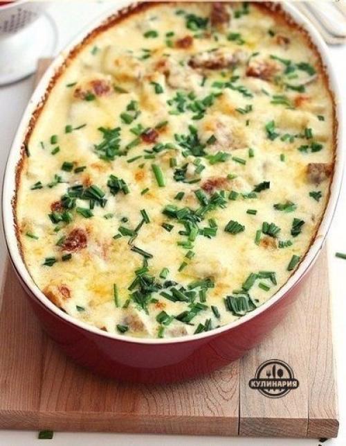Закройте фольгой и выпекайте 30 минут. Снимите фольгу и держите еще 20-30 минут. Прямо перед подачей свержу присыпьте тертым сыром и подержите еще 3-5 минут, чтобы он расплавился. Присыпьте зеленым луком и подавайте. Приятного аппетита!