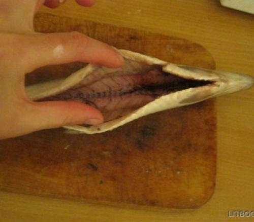Солить селедку можно как с внутренностями, так и без них. Я предпочитаю солить ее без внутренностей, чтоб в дальнейшем было меньше мороки, поэтому вынимаю их и еще раз хорошенько промываю рыбку водой. Заметьте, что голову я не отрезаю сразу, хотя можно удалить и ее - мне больше нравится солить ее целой.