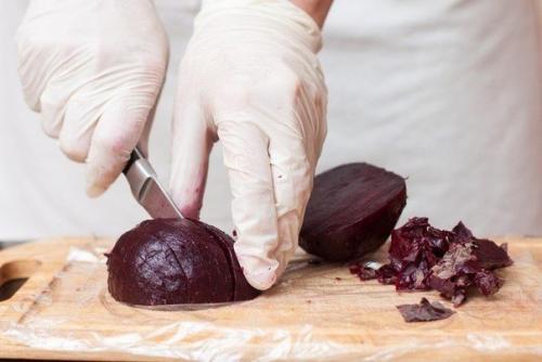 * Поскольку свекла сильно красит руки, я надела перчатки, чтобы потом не пугать вас своими "Кровавыми" пальцами.