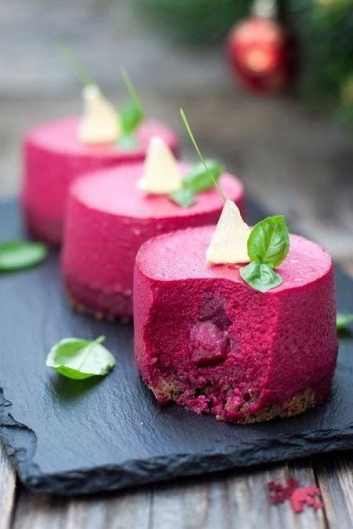 6. если у вас есть высокие металлические кольца для десертов - прекрасно! Вырежьте ими хлебные заготовки и так и оставьте - потом заполните муссом. В том случае, если же нет - не беда! Канцелярские файлы вам в помощь. Места стыков скрепите при помощи скотча или степлером. Наденьте формы на хлебные донышки и залейте свекольным муссом. Уберите в холод на час. Только в том случае, если подавать планируете на след. День, снимайте кольца только перед подачей, иначе края мусса заветрятся и потемнеют. Можно смазать верх тонким слоем раст. Масла. Мои "Чизкейки" стояли сутки в холодильнике до фотосессии и, как видите, имею свежий и бодрый вид приятного аппетита!