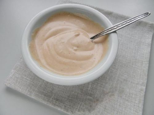 4. для соуса смешайте майонез с кетчупом и щепоткой черного перца.