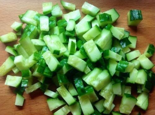 2. тем временем нарезаем огурец.