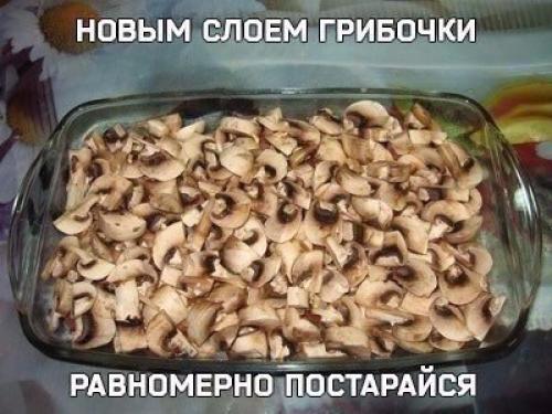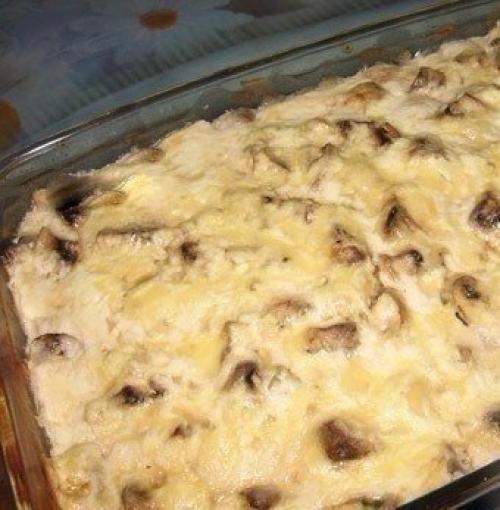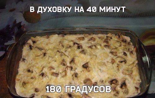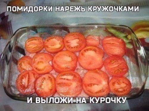 Куриное Филе 500 г.Помидоры 2 шт.Твердый сыр 150 г.Сметана 15-20% 200 г.Шампиньоны 300 г.