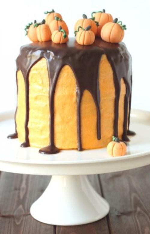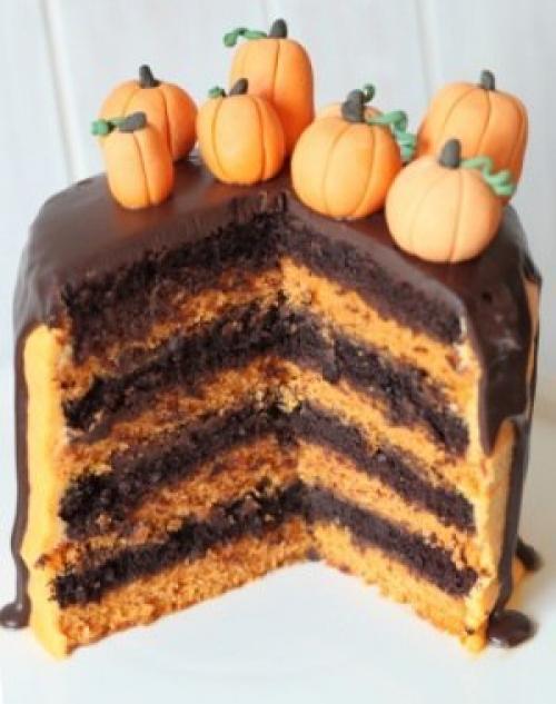 Превосходный торт, на который не возможно равнодушно смотреть, а когда попробуешь кусочек просто не оторваться. Восхитительные коржи с шоколадно - сырным кремом. Оранжевый цвет коржей и крема за счет апельсиновой цедры и сока. Торт стоит того, что бы с ним повозиться. Украсить торт можно по разному, например на веселы праздник хэллоуин, при помощи марципановых украшений.