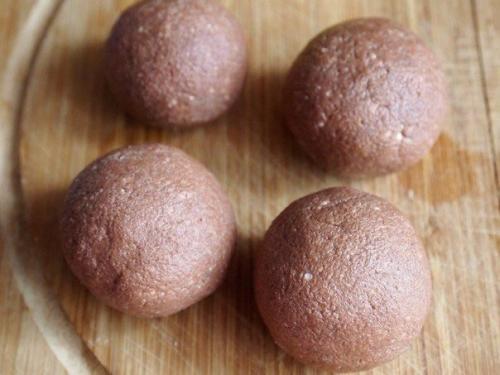 4. второй вариант подачи: банан порезать на кружочки. От теста отщипывать небольшой кусочек, сделать лепешку. В центр лепешки положить кусочек банана. Скатать в шарики. Также убрать в холодильник на 20 минут.