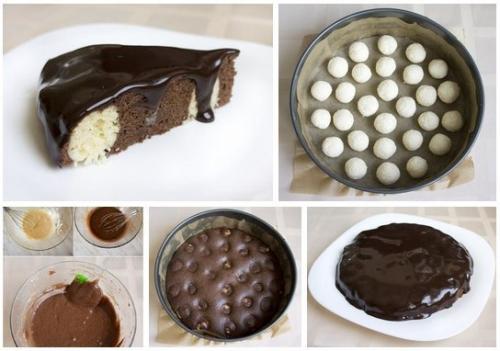 Пирог очень вкусным получается. Шоколад можно брать любой, в зависимости от шоколада количество сахара нужно варьировать. Кто любит послаще, кладите больше и в шарики и в сам пирог. Можно выложить шарики на тесто и не делать глазурь.
