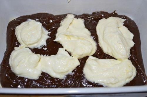3. слои повторить, сверху должно быть шоколадное тесто. Деревянной шпажкой сделать разводы. Выпекать шоколадно - творожный пирог при 180 C 30-40 минут. Остудить на решетке. Очень вкусный, нежный шоколадно - творожный пирог готов. Приятного аппетита!