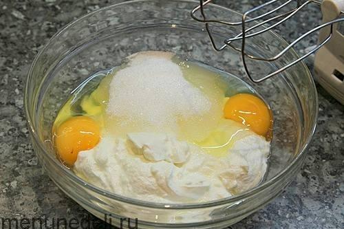 Для приготовления теста взбить яйца с сахаром.