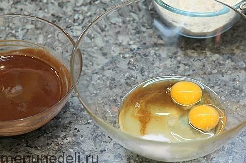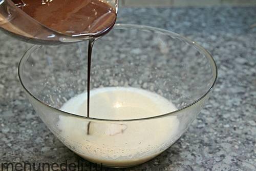 Соединить взбитые яйца с остывшей шоколадно-масляной массой. Аккуратно все смешать.