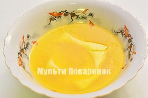 Масло растопите до жидкого состояния. Если у вас есть микроволновая печь, то растопить масло можно в ней, просто поставив блюдце с маслом на 30 секунд в микроволновку на самую высокую мощность.