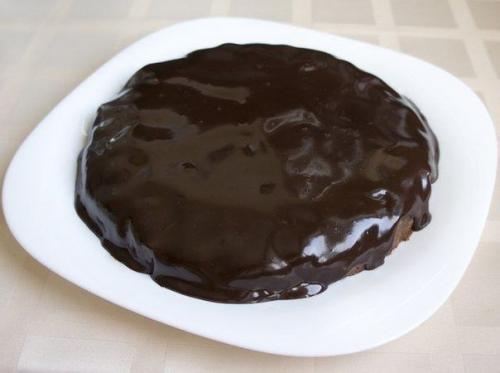 Остывший пирог извлечь из формы и покрыть глазурью (или сначала покрыть глазурью, а потом извлечь из формы).