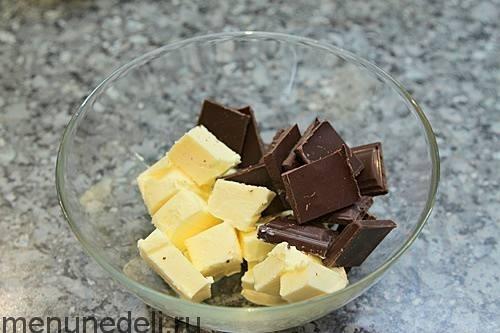 Растопить на водяной бане черный шоколад со сливочным маслом.
