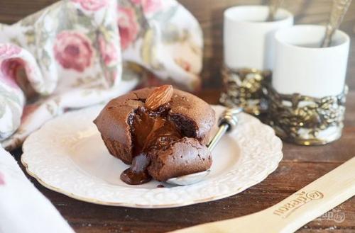 7. выпекайте в разогретой до 180 градусов духовке 10-12 минут. Но не более, а то не получится жидкая сердцевина. Приятного аппетита! Сохрани рецепт, чтобы не потерять!