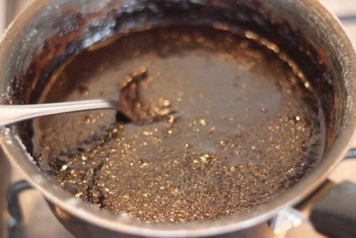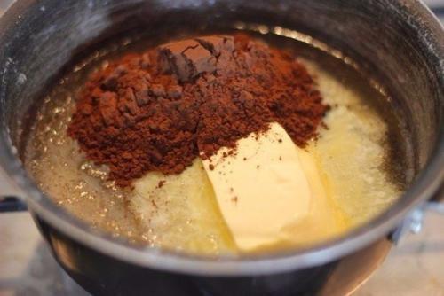 4. снимите с огня и растопите в горячем сиропе масло и кэроб (какао.
