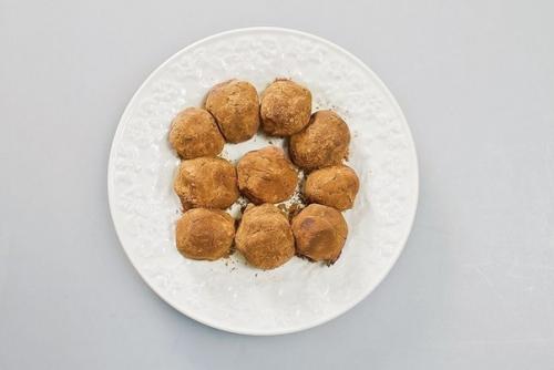 При помощи двух чайных ложек или просто руками скатать из шоколадной массы шарики размером с грецкий орех. Чтобы масса не липла к ложкам и пальцам, их можно периодически смачивать в теплой воде.