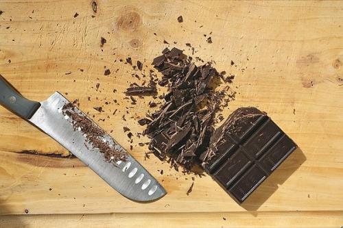 Пока нагревается молочная смесь, шоколад мелко нарезаем ножом.