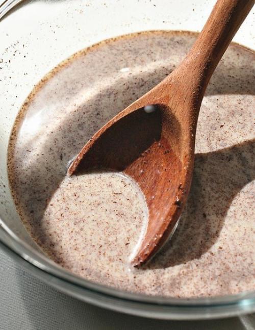 Затем молочно - шоколадную смесь переливаем обратно в кастрюлю. Нагреваем до полного растворения шоколада. Остужаем.