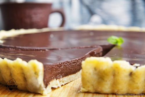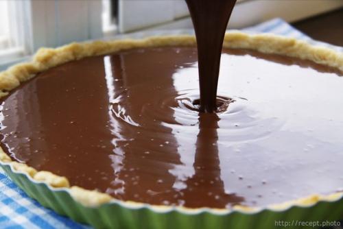10. через 25 минут вытаскивайте и отложите на 2 часа остыть. А пока займемся глазурью. Для этого 120 граммов шоколада и 10 граммов сливочного масла снова в миску. И туда же 100 граммов почти кипящих сливок и опять же смешать в глянцевую глазурь. Вот совсем недавно это было. Deja vu, блин! 11. Остывший пирог залейте шоколадной глазурью. И прежде чем начать поедать, дайте ему часик подостыть. 12. Кстати, на поверхность напрашивается вензель из взбитых сливок и две - три штуки клубники. Разве нет приятного аппетита!