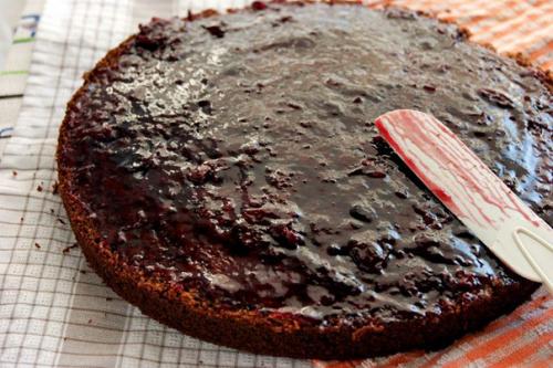 Смазать нижний корж джемом (ушло примерно пол баночки).
