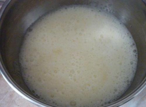 Мы смешиваем в кастрюльке сахар и белки.