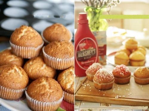 2. добавляем сметану, аккуратно перемешиваем выкладываем в формочки и ставим в горячую духовку, выпекать около 20 минут но лучше как зарумянятся проверить спичкой на готовность.