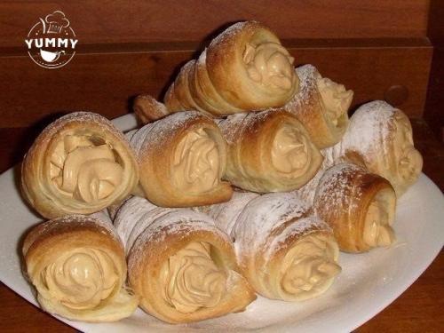 Остывшие трубочки начинить кремом! Посыпать сахарной пудрой для красоты. Приятного аппетита!