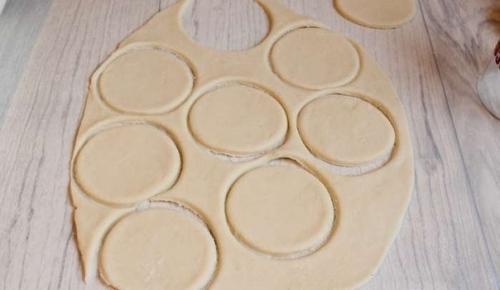 Через 30 минут раскатываем тесто толщиной 3-4 мм. Выдавливаем кружки стаканом, таким как наши шайбы ананаса.