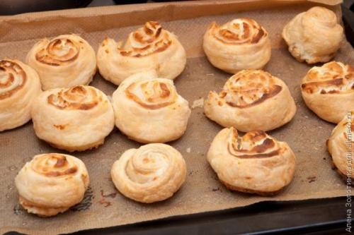 - Розочки из слоеного теста с творогом. Розочки с творогом из слоеного теста