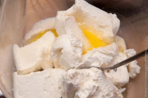 Если творог суховатый - еще необходимо 1-2 яйца, у меня был влажный, поэтому я яйца не стала класть.