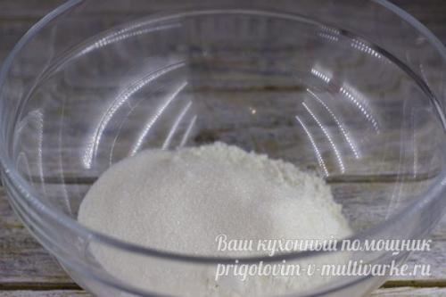 После этого добавляем к сухим компонентам сахарный песок. Чтобы выпечка была вкуснее и нежнее, необходимо использовать вместо сахара пудру.
