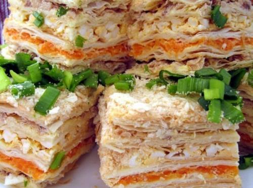 Верх украсить сёмгой, икрой и зеленью. Приятного аппетита!