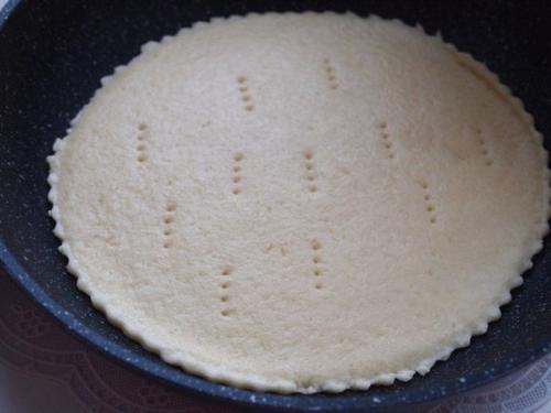 5. коржи выложить на сухую сковороду, часто наколоть вилкой, чтобы не пузырились.