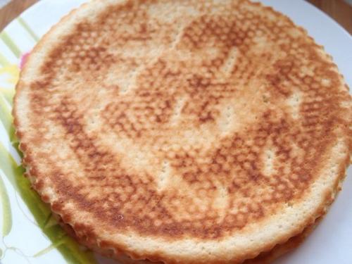 6. обжарить с двух сторон до румяности каждый корж. Коржи очень быстро обжариваются! Нужно следить, чтобы они не подгорели.