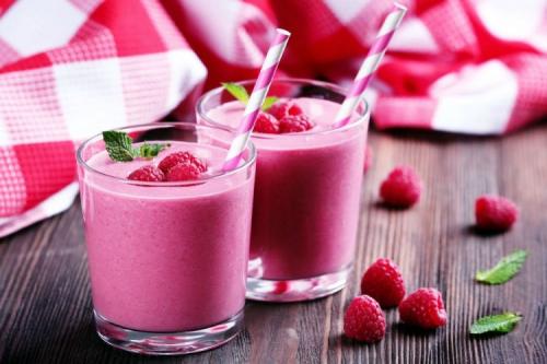 Приготовление: В чашу блендера влей охлажденное молоко. Добавь малину и хорошенько взбей.