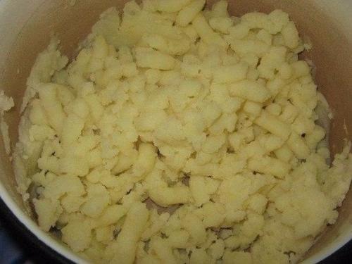 1. горячий картофель размять, добавить яйцо, соль, муку и замесить тесто не липнущее к рукам.